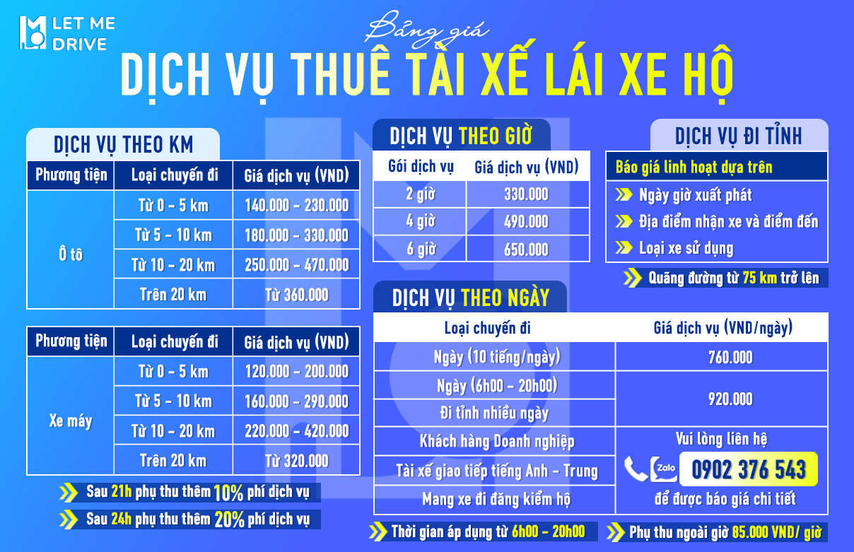 Bảng giá thuê tài xế đi thị trường